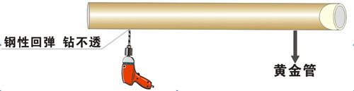 金屬保護強(qiáng)度高,金(jīn)屬層保護受衝擊(jī)後產生強(qiáng)力(lì)反彈,全(quán)麵保護管材不受損,不漏水